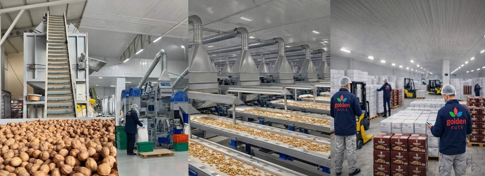 Golden Nuts’ta üretim; planlı, kontrollü ve sürdürülebilir bir temel üzerine inşa edilmiştir. 26 yılı aşkın tecrübemizle ceviz, badem ve kaju işleme süreçlerinde uzmanlaşarak, uluslararası alıcıların beklentilerine uygun, net ve uygulanabilir standartlar oluşturuyoruz.
